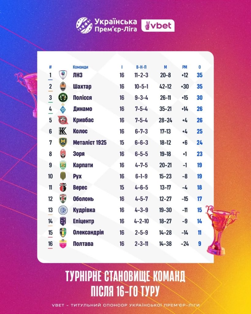 УПЛ. 16 тур
